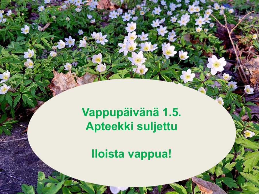 Apteekki suljettu vappupäivänä pe 1.5., palvelemme jälleen lauantaina 2.5.2026! YleinenBy Jani Rönkkö25.4.2026